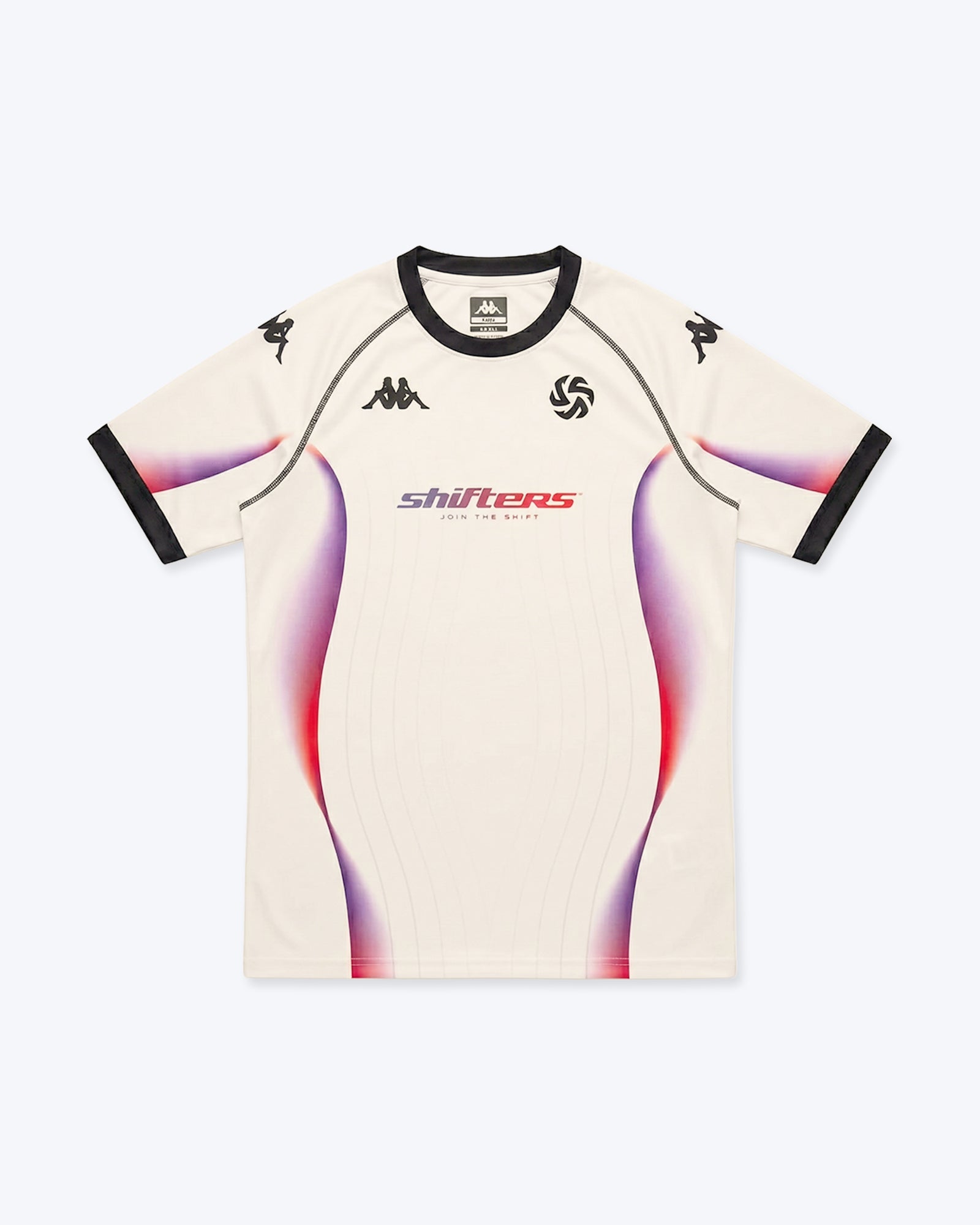 Base blanc cassé, lignes de vitesse, dégradés violet et rouge : chaque détail traduit le mouvement, la progression et l’énergie permanente des Shifters.